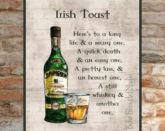 Irish Toast Wall Art Here S To A Long Life And A Merry Etsy New Zealand